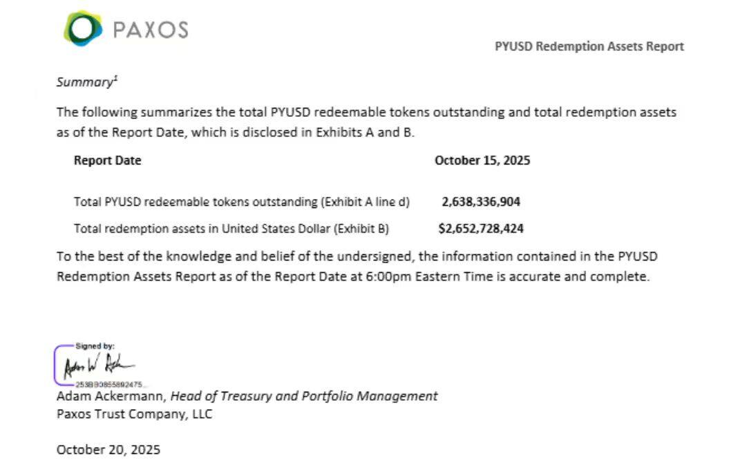 Paxos发布PYUSD鉴证报告:流通总额突破26亿枚创历史新高,较八月增长约125.5%