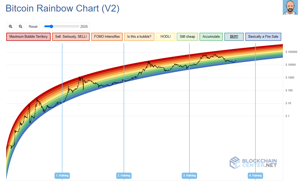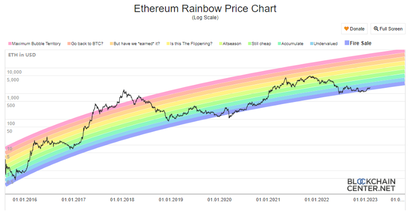 从最近的上涨势头来看,BTC 彩虹图已从最底部的“低价抛售区”反弹到“买入区”和“囤积区”交界处,而 ETH 仍然处于最底部的“低价抛售区”。如果后续市场上升趋势得到确认,ETH 上涨的弹性将大于 BTC。