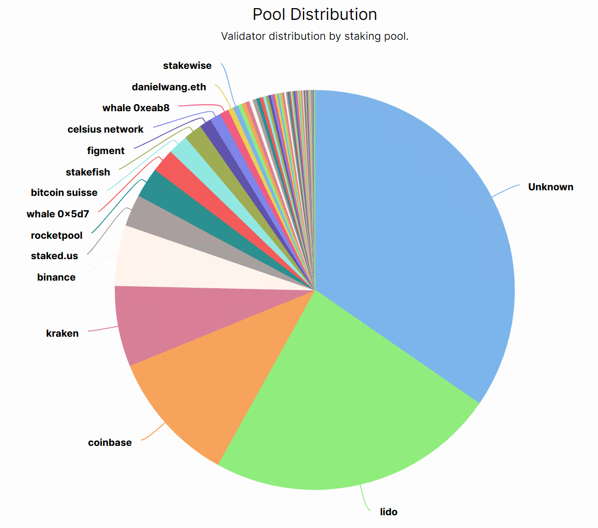 此外,根据 glassnode 的数据显示,有退出验证者意愿的节点共有大约 920 人。同时,由于监管原因,通过中心化机构质押的 ETH 代币大部分将会进行解锁,极端情况下需要完全退出。这里可能包括Kraken(6.52% )和 Binance(4.92% ),这有超过 200 万 ETH,由于验证者流失限制函数,全部提款完成也需要一个月的时间。但这些质押的 ETH 并不会完全流通于市场,很大可能会继续存入其它质押协议中。