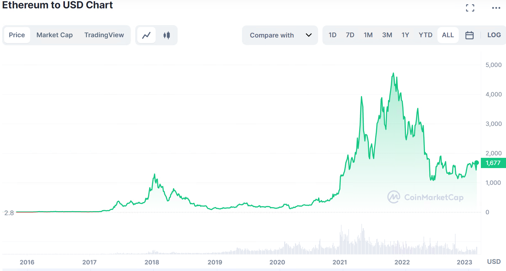图 2. ETH 价格曲线(来源:coinmarketcap)
