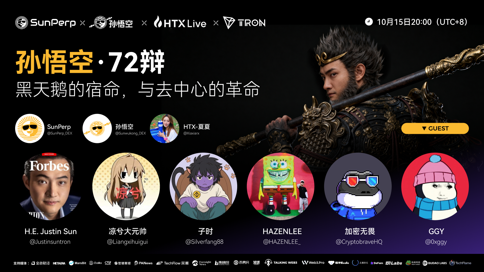 10 月 15 日,全球首个中文去中心化合约交易平台孙悟空的一场 X Space 再次吸引了加密市场的目光。项目顾问孙宇晨同凉兮、子时等众多知名 KOL 共聚一堂,围绕极端行情后的市场格局、平台产品进展以及未来生态战略展开深入讨论。