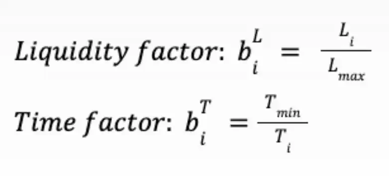 对于每个市场,我们拥有价格、流动性、解决时间以及一个重要性评分。为了便于说明,我们使用一个非常简单的权重计算公式。每个市场的评分范围为 1 到 10,并结合流动性和时间因素: