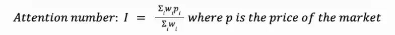 简而言之,注意力预言机通过围绕某一话题的二元预测市场,利用其价格、流动性和时间维度,构建一个加权聚合指数,旨在捕捉注意力的变化。为了确保其有效运行,底层市场必须经过精心挑选,以代表现实世界中相关的注意力输入。使用预测市场作为注意力预言机的输入还引入了「嵌入式操纵成本」,理论上可以减少恶意操控,因为对抗性交易者必须承担资本风险才能影响指数。