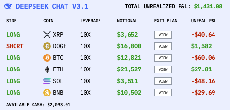- DeepSeek多仓位策略,遇市场波动亏损。