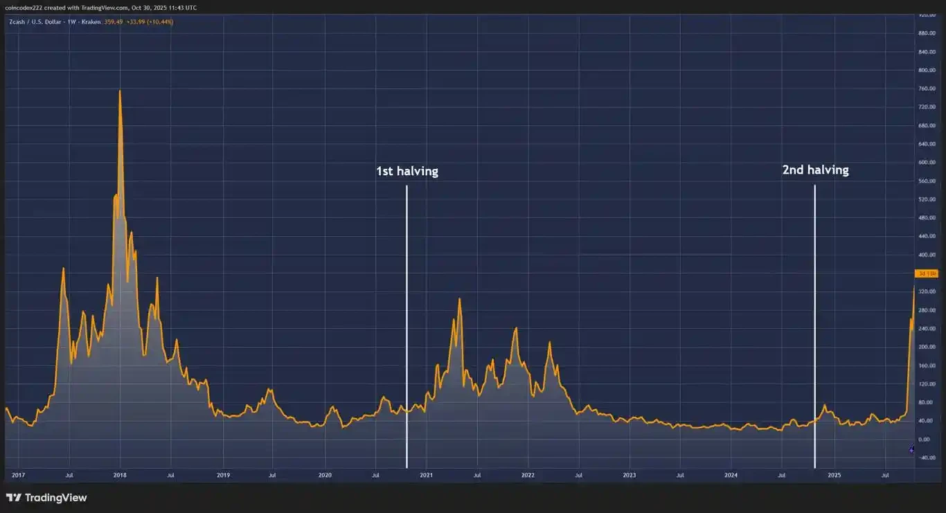 减半的说法——即使被一些交易者误解(2025 年减半的传言是错误的)仍然吸引了人们对 Zcash 故事的关注。