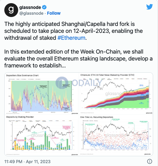 Glassnode:预计以太坊上海升级后首周内只有不到1%的质押ETH将被解锁