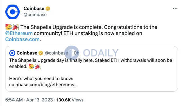 Coinbase已开启ETH解除质押功能