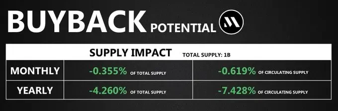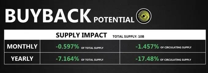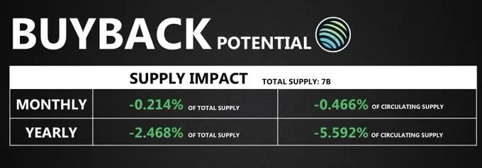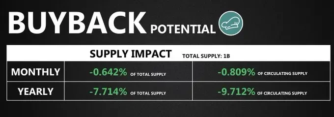 截至目前,他们已回购了3%的代币供应量。照此速度,一年内他们将能够回购近20%的流通供应量。