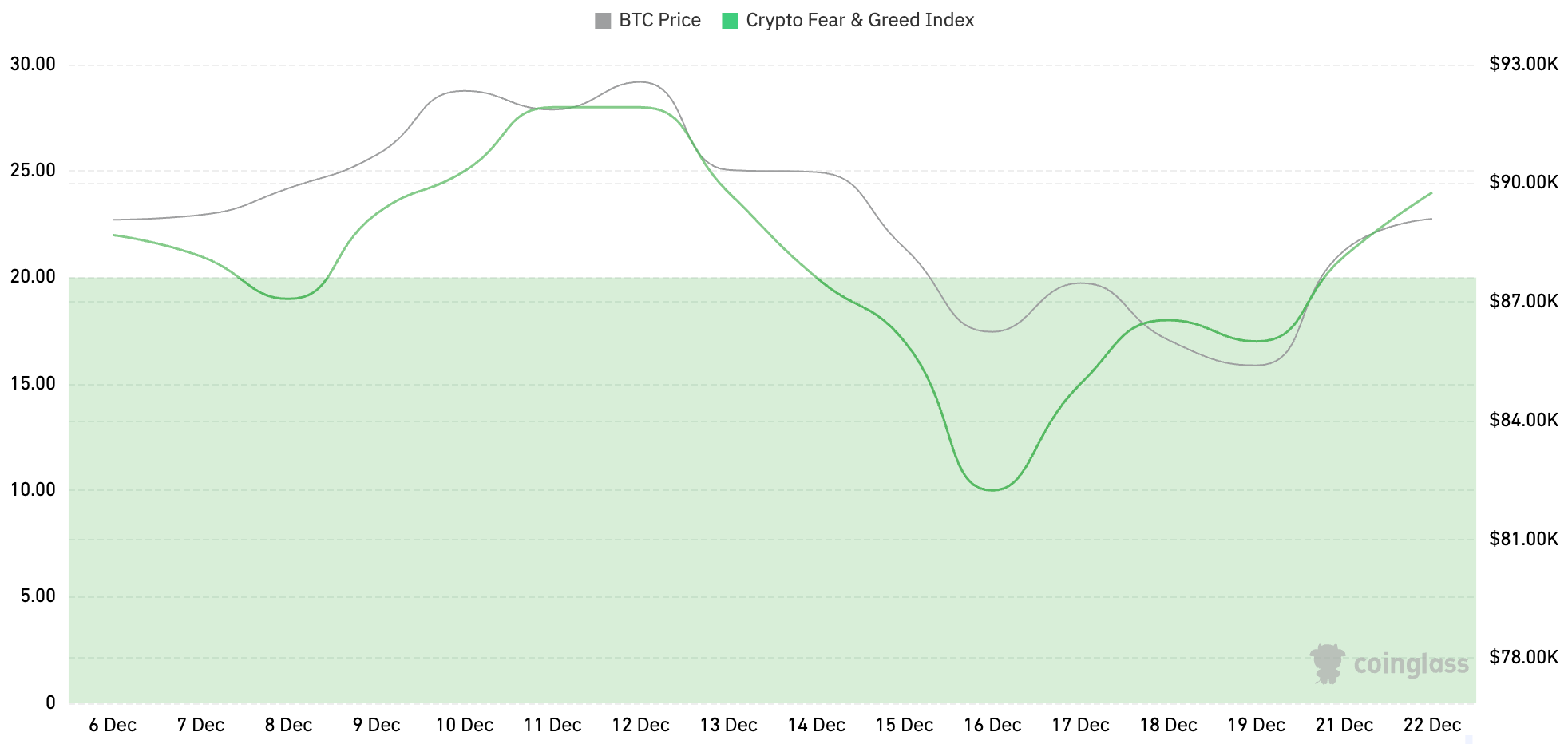 加密货币恐慌指数为24,显示为恐慌。
