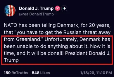 特朗普总统—Truth Social(2026 年 1 月 18 日)